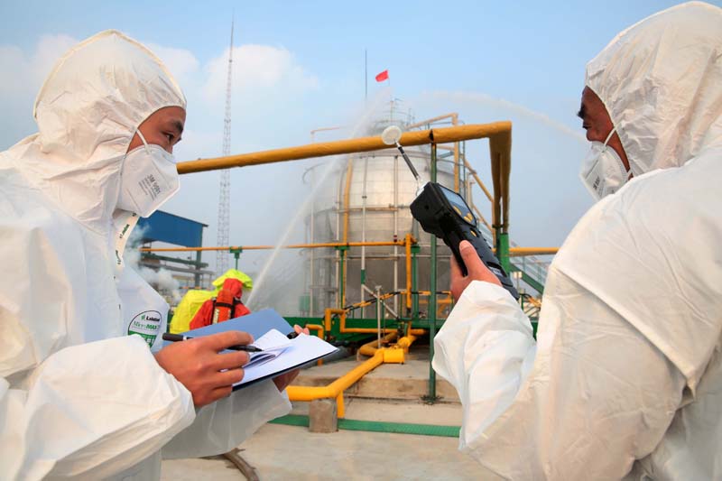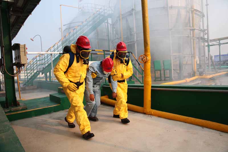 此次演練采取“實(shí)案、實(shí)地、實(shí)兵、實(shí)裝”的形式組織實(shí)施,模擬堿業(yè)公司危化品二級(jí)重大危險(xiǎn)源液氨儲(chǔ)存罐區(qū),液氨球罐B罐底部儀表導(dǎo)液管截止閥發(fā)生泄漏,引發(fā)人員中毒。事故發(fā)生后,企業(yè)組織自救,根據(jù)事態(tài)發(fā)展相繼啟動(dòng)市開發(fā)區(qū)管委會(huì)和市政府應(yīng)急響應(yīng),組織開展應(yīng)急救援行動(dòng),最終及時(shí)有效地控制了事態(tài),最大限度地減少了事故造成的損失。
