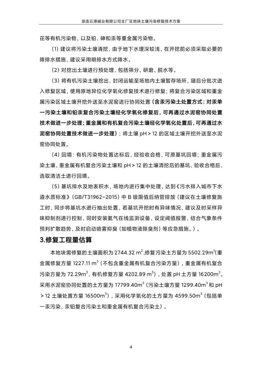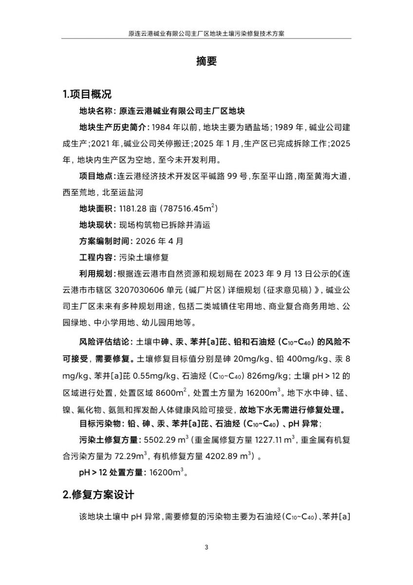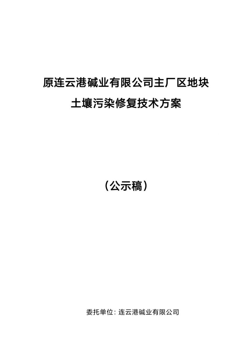 原連云港堿業有限公司主廠區地塊土壤污染修復技術方案(公示稿)