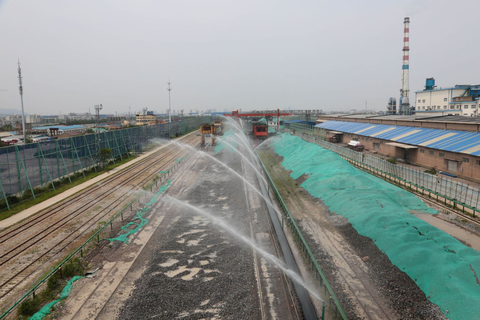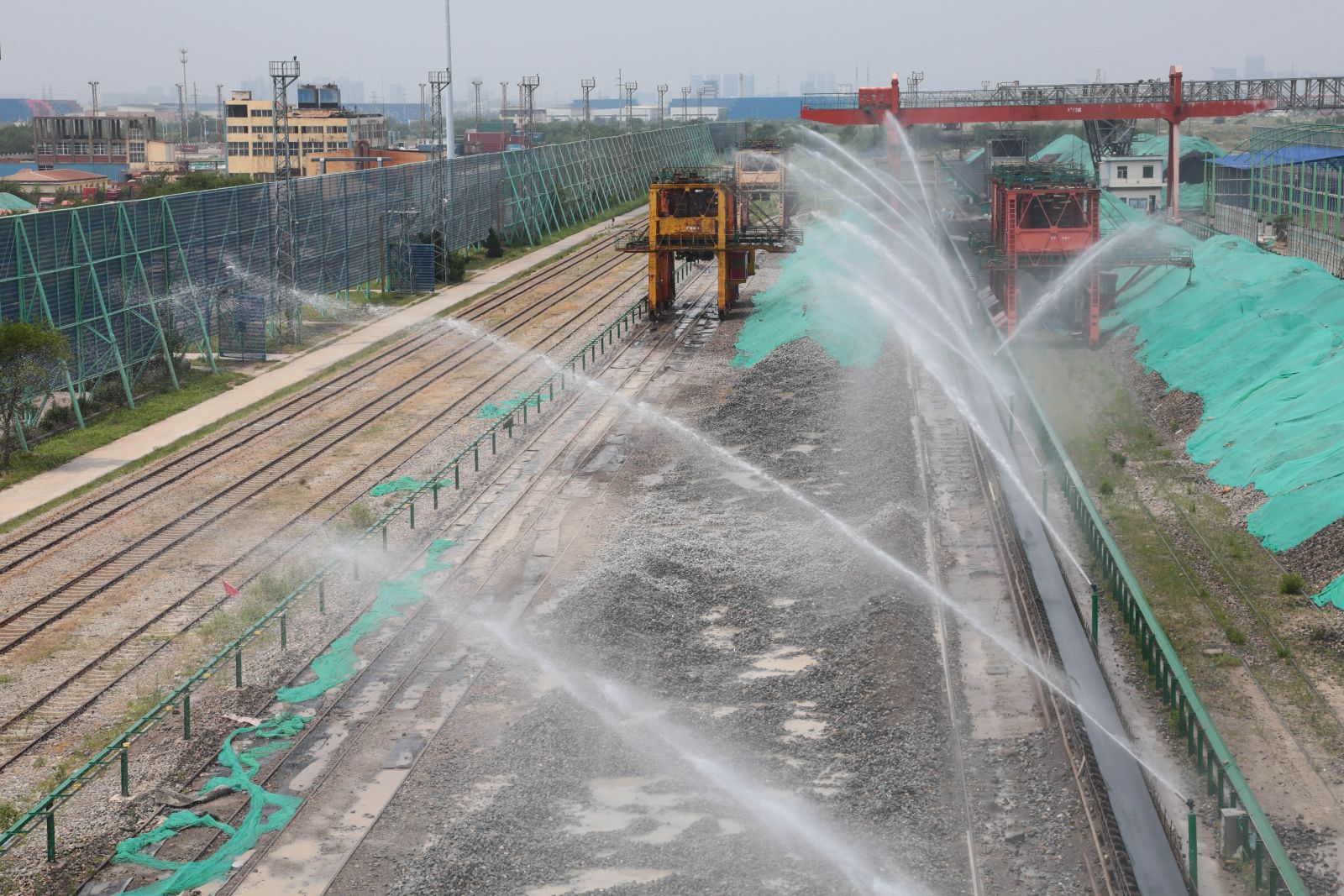 6月12日,公司定時開啟噴淋裝置,一排排的水幕準(zhǔn)確的覆蓋在原料場地存放的石灰石、焦炭和原煤堆上,消除裝卸作業(yè)時粉塵飄散對周邊環(huán)境的影響。這是公司積極落實市委市政府開展的降塵治車、保衛(wèi)藍天行動的一種舉措。公司主動作為,對露天原料堆場進行整體覆蓋,每日定時噴水降塵,確保清潔文明生產(chǎn)。
