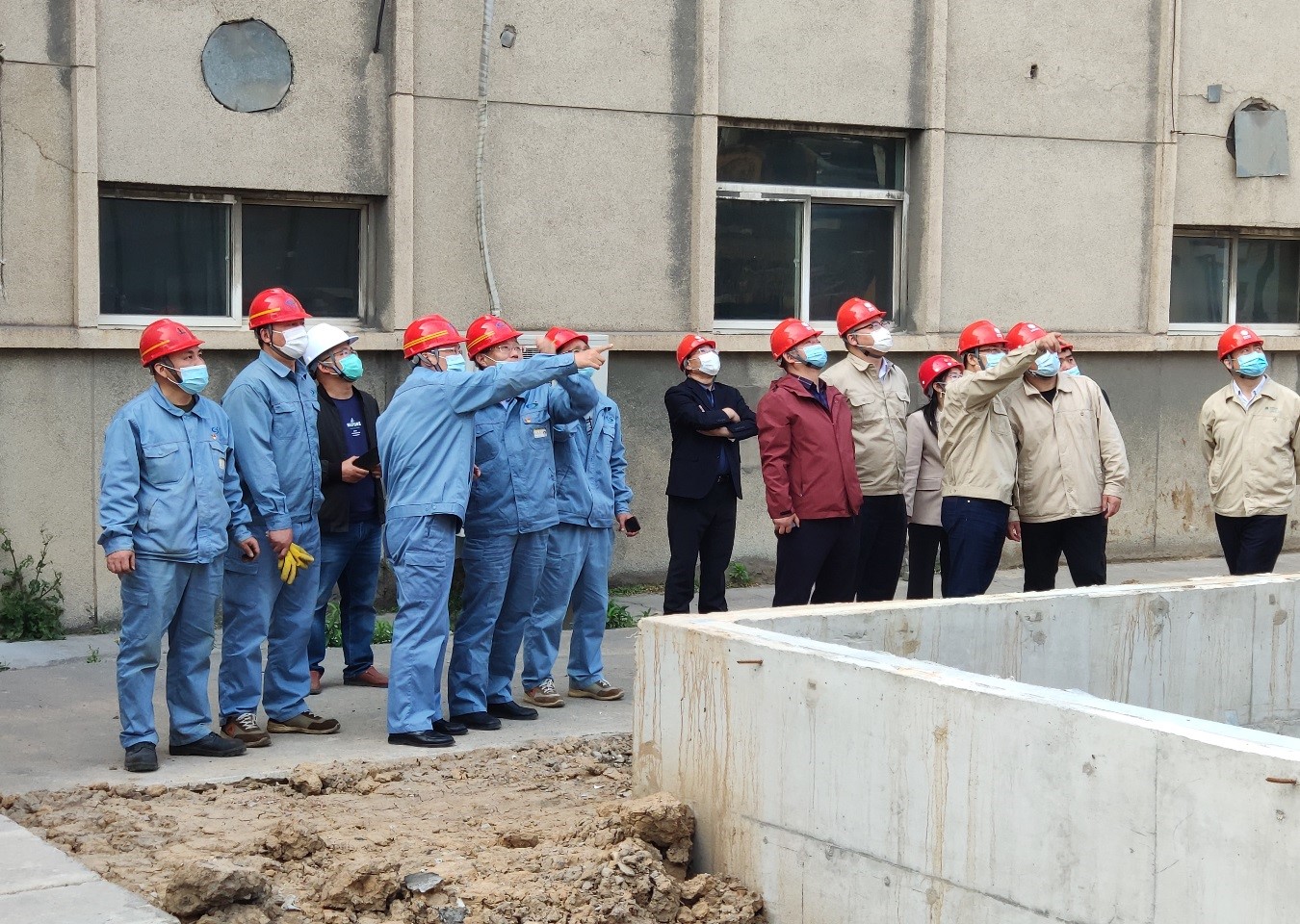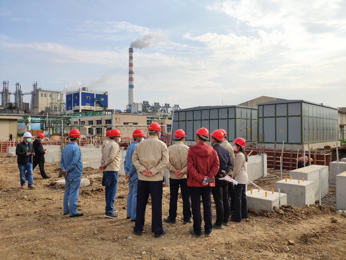 程真何一行人員在堿業公司董事長張衛民的帶領下實地考察了外電網系統供電增容改造施工狀況,并就施工質量和進度提出了意見和建議。