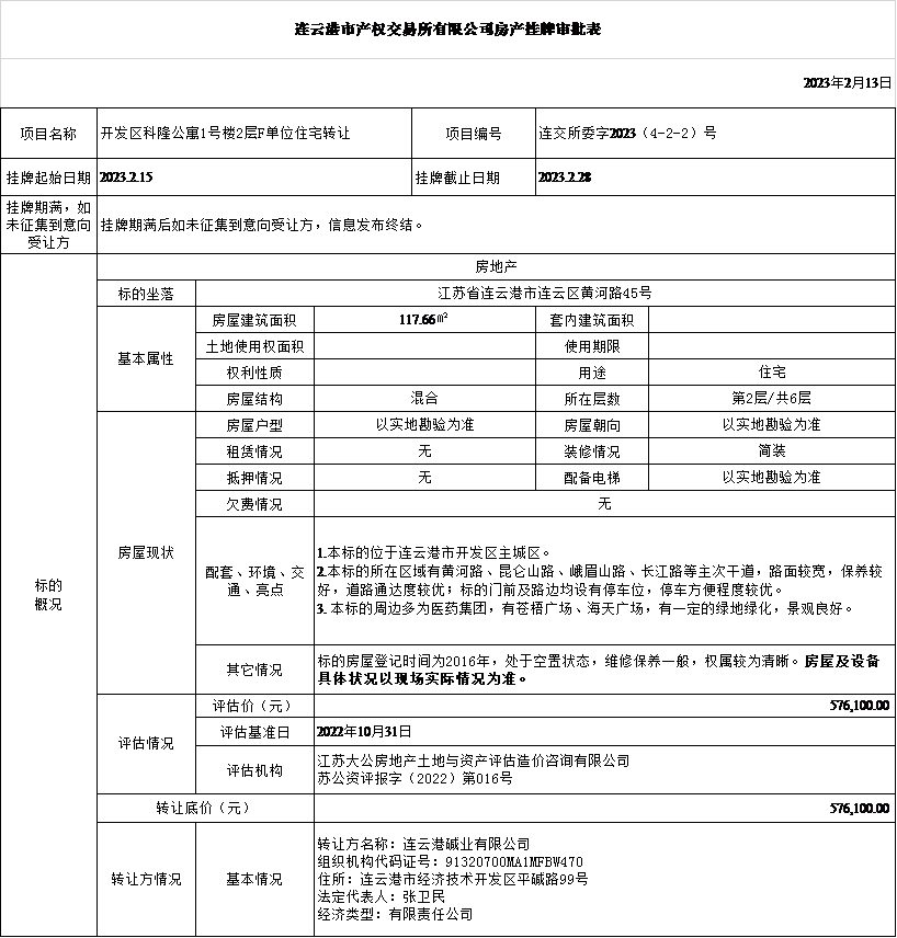 開發區科隆公寓1號樓2層F單位住宅轉讓