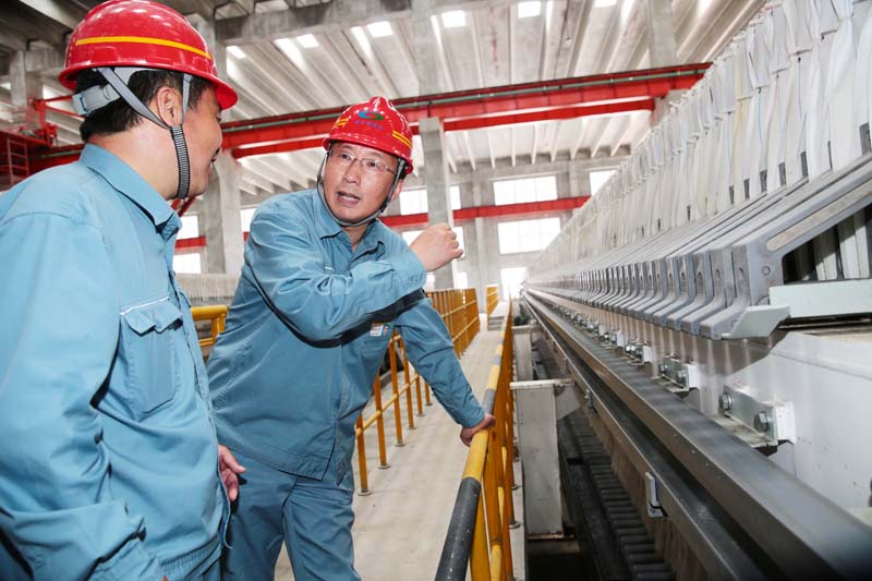 5月16日上午,公司黨委書記、董事長張衛(wèi)民,黨委副書記、總經(jīng)理李清菊,黨委委員、副總經(jīng)理黃建華,黨委委員、副總經(jīng)理焦旺盛等一行到渣處理車間指導工作。