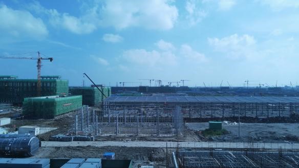 ⑴聯堿一標段101b聯堿辦公樓砌體及二構施工;152中心控制室鋼結構屋面安裝,基礎磚墻±0m以下砌筑;151化驗中心地坪以下砌體施工準備;340機電儀維修廠房鋼結構屋面工程,廠家預制加工完成;510重堿車間蒸吸罐區其他非標設備基礎,V51301A/B頂板及加強筋拼裝、V51301A溢流箱內加強筋安裝;532重灰工段深基坑接樁,土方回填;280b換熱站屋面鋼結構工廠預制基礎磚墻±0m以下砌筑;550壓縮及冷凍裝置空冷器框架,廠房基礎澆筑。