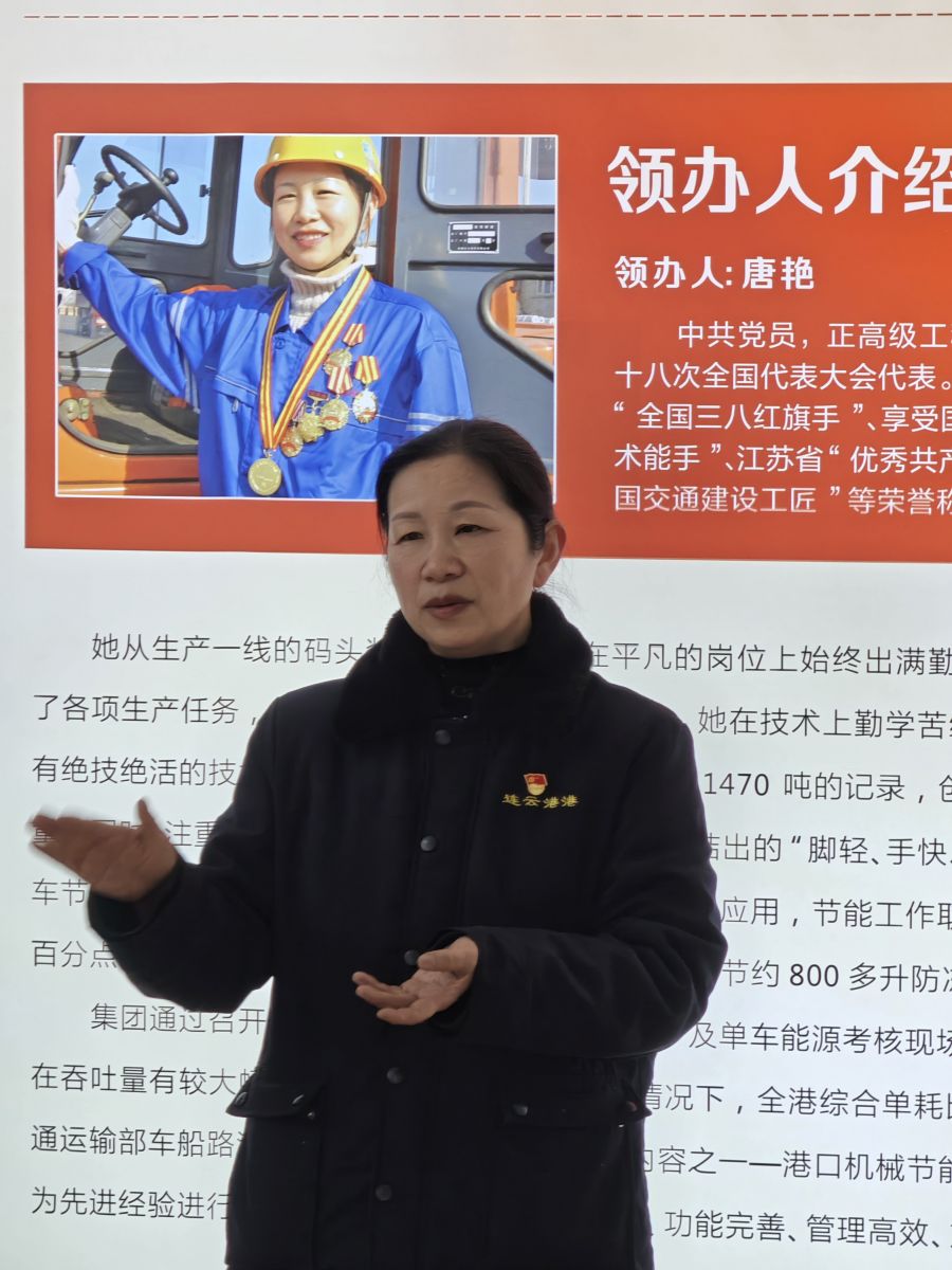 活動(dòng)第一站,大家乘車前往連云港港口集團(tuán)有限公司,參觀全國勞模唐艷工作室。現(xiàn)場(chǎng),勞模唐艷為青年職工們介紹了工作室的情況,講述了自己珍貴的人生經(jīng)歷。唐艷鼓勵(lì)大家要樂于奉獻(xiàn)、敢于創(chuàng)新,在平凡的崗位上一步一個(gè)腳印,才能創(chuàng)造不平凡的業(yè)績。她的話就像是冬日里的一抹暖陽,為青年職工們的內(nèi)心點(diǎn)燃動(dòng)力的火焰。