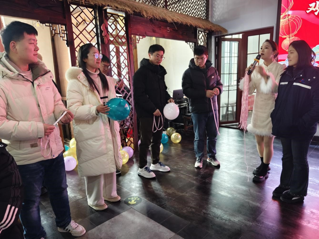 聯(lián)誼活動(dòng)正式開始!首先,主持人通過抽取撲克牌的趣味游戲,為青年男女們分組配對(duì),幫助他們打破冰層,迅速熟絡(luò)。緊接著,不同組的青年男女們積極踴躍地參加踩氣球、運(yùn)氣球趣味活動(dòng),他們彼此間的距離也愈發(fā)拉進(jìn)。本次活動(dòng)中,獲得游戲勝利的隊(duì)伍可以獲得紅包獎(jiǎng)勵(lì),而失敗的隊(duì)伍則需要接受懲罰,添加在場(chǎng)異性青年或隊(duì)友的微信。